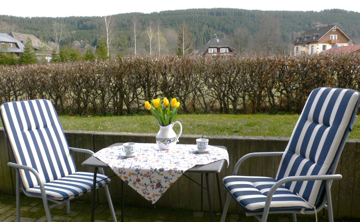 Für ein entspanntes Draußenvergnügen sorgen ein Garten und eine möblierte Terrasse. Das Ambiente des Wohnraums mit seiner offenen Küche und der Essecke im kleinen Erker erfreuen durch ausgesuchte Ausstattung und Landhaus-Chic. Ein separates Schlafzimmer mit Doppelbett und ausreichendem Schrankplatz sowie ein Duschbad machen das Angebot komplett.